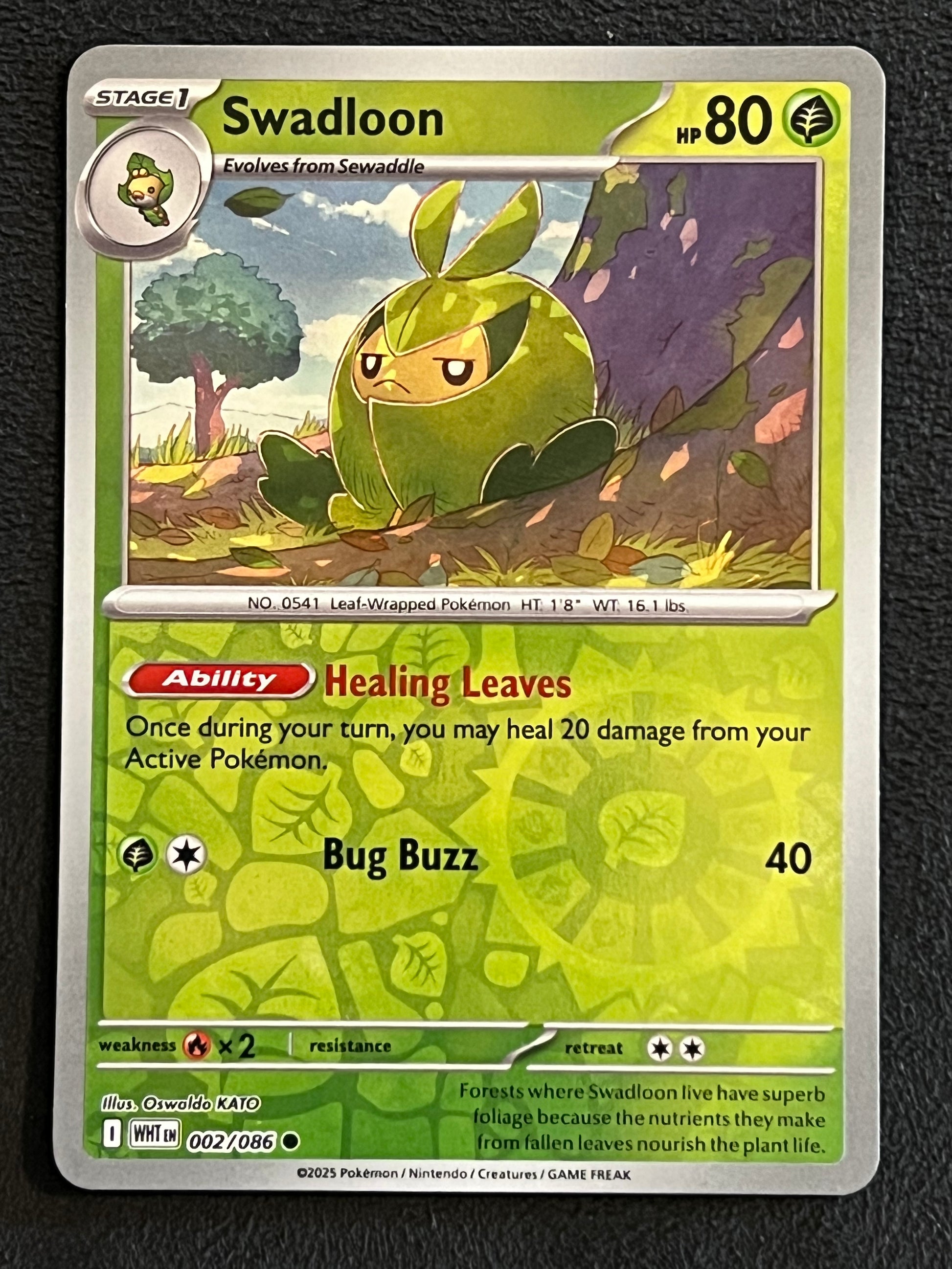002/086 Swadloon - Pokémon White Flare Common Reverse, mint/near-mint condition.