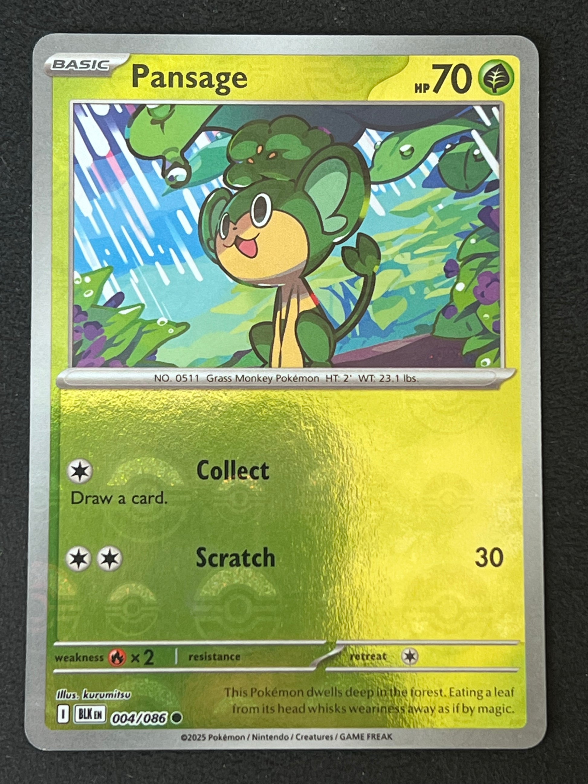 004/086 Pansage - Pokémon Black Bolt Common Reverse POKEBALL, mint/near-mint condition.