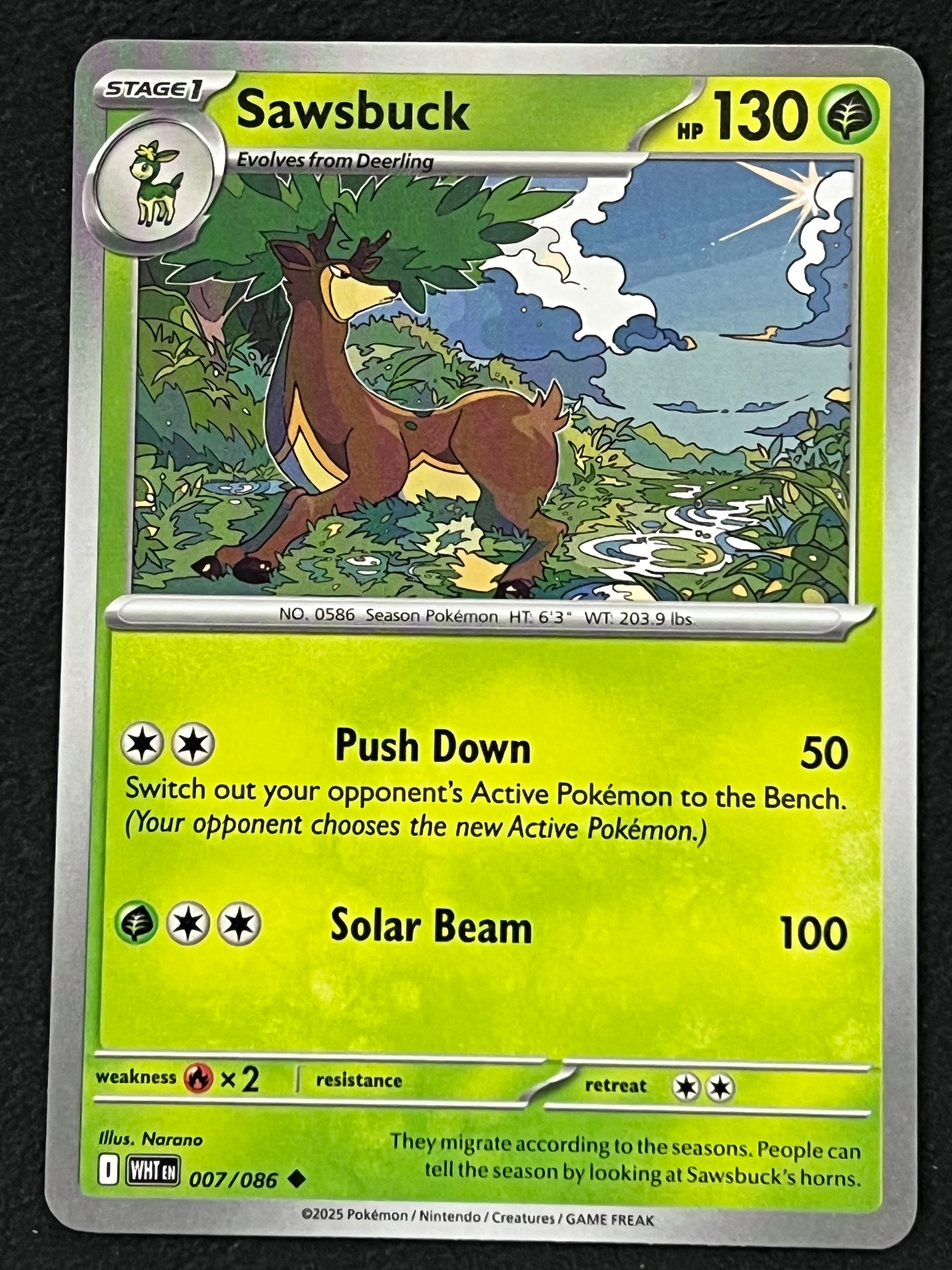007/086 Sawsbuck - Pokémon White Flare Uncommon, mint/near-mint condition.