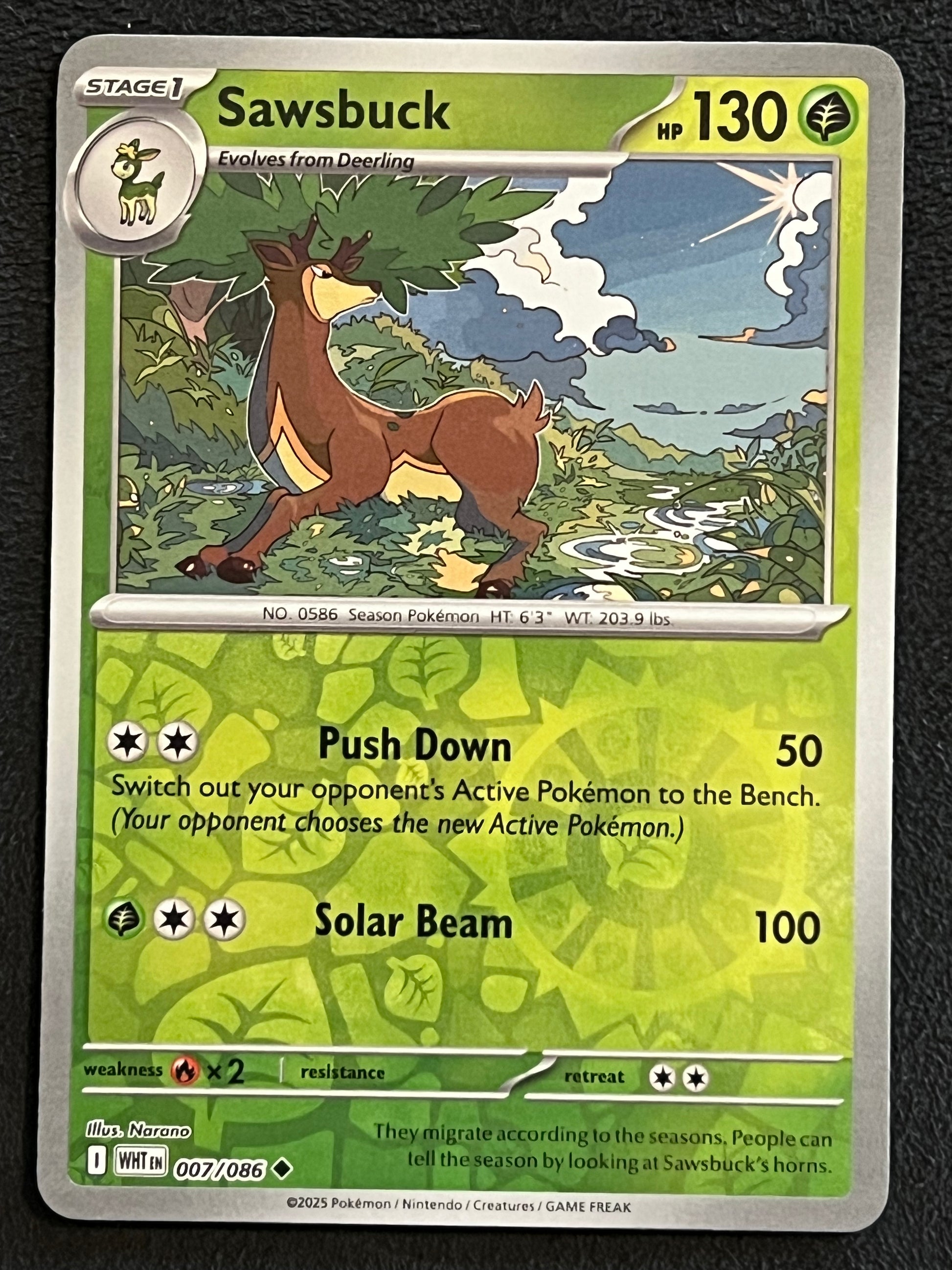 007/086 Sawsbuck - Pokémon White Flare Uncommon Reverse, mint/near-mint condition.