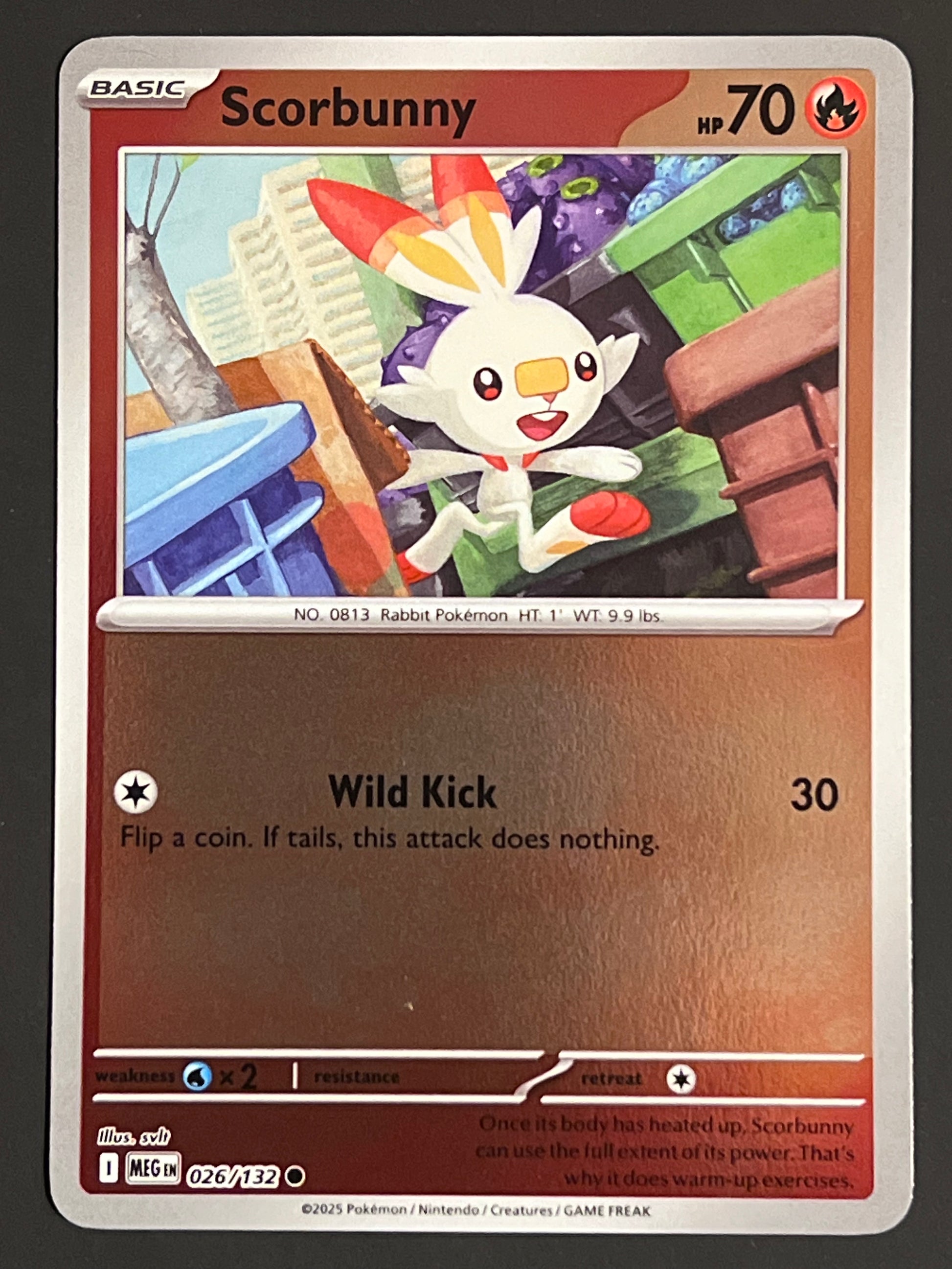 026/132 Scorbunny - Pokémon Mega Evolution Base Common Reverse, near-mint condition.