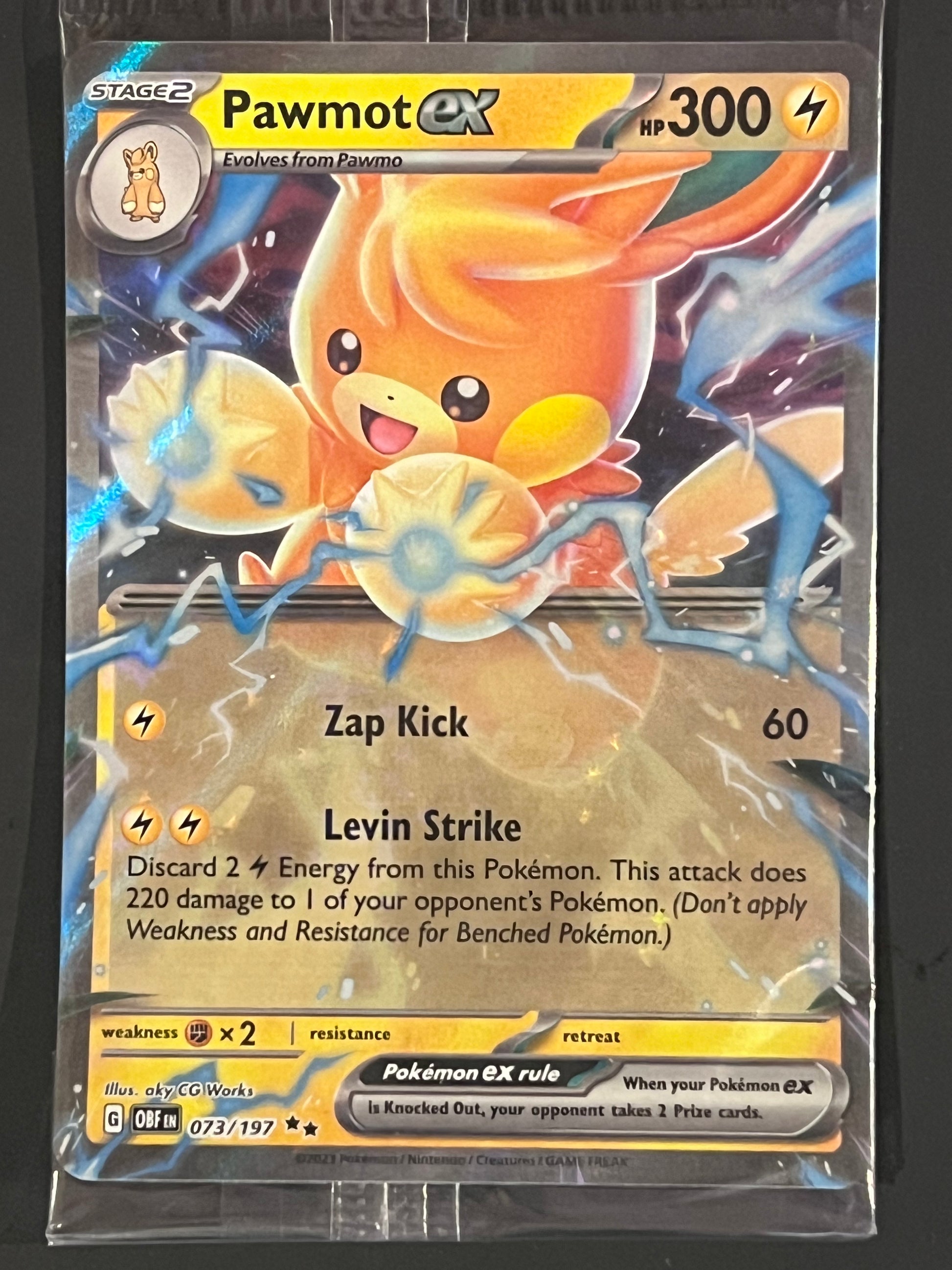 073/197 Pawmot Ex (SEALED) - Pokémon Obsidian Flames Double Rare, mint/near-mint condition, comes packed in a sleeve and a semi-rigid case.