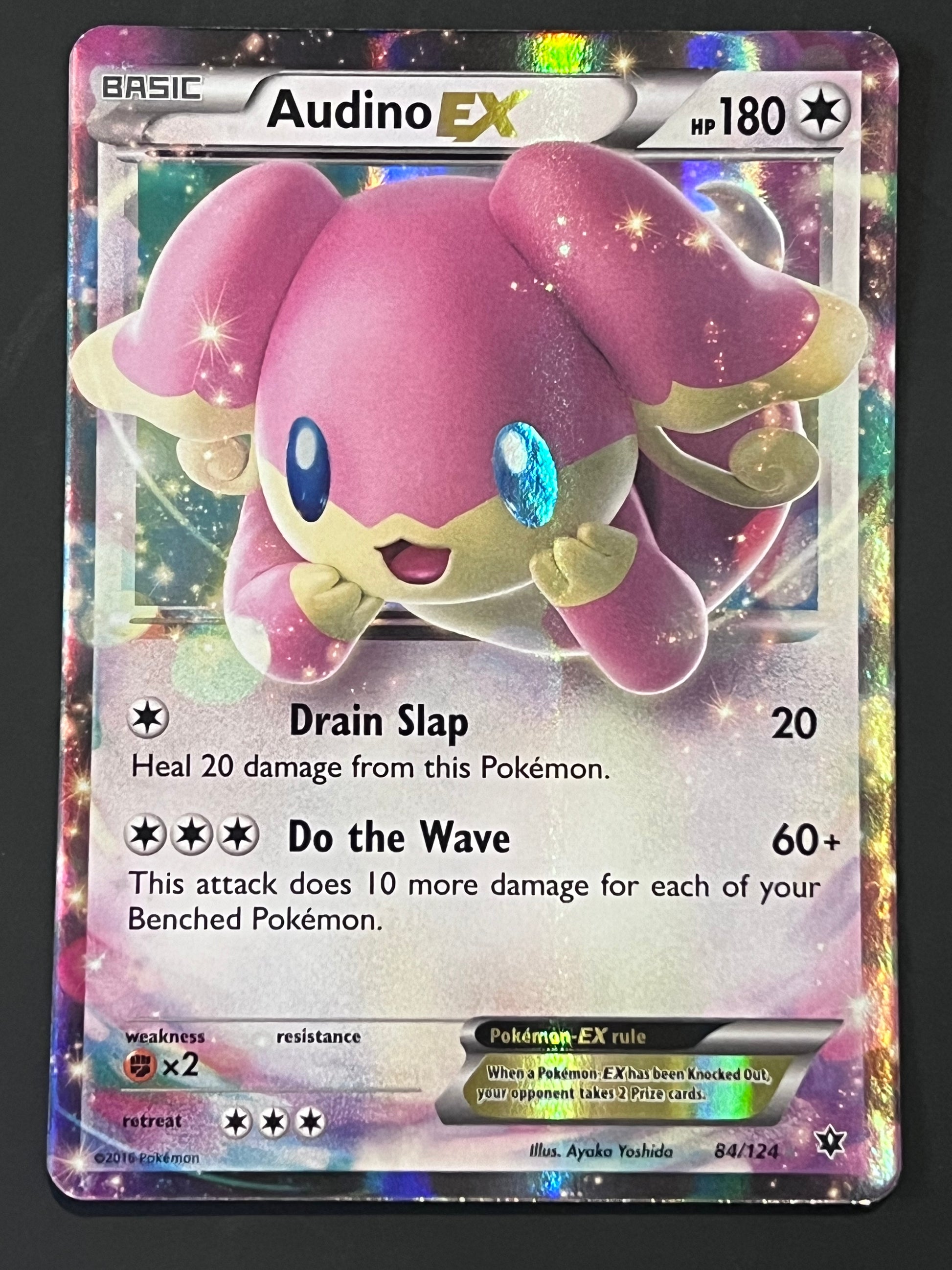 084/124 Audino Ex - Pokémon Fates Collide Ultra Rare, near-mint condition, comes packed in a sleeve and a semi-rigid case.