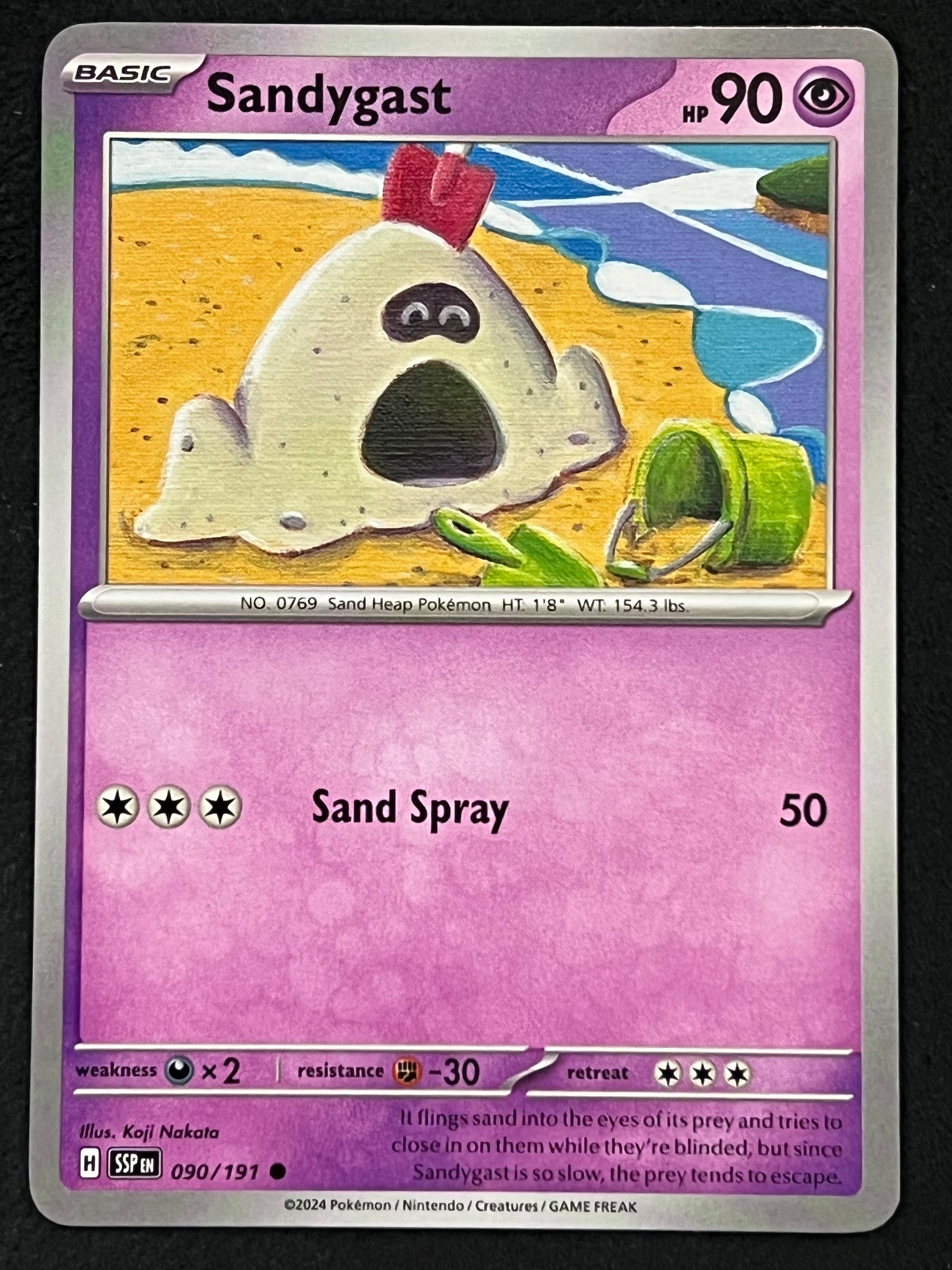 090/191 Sandygast - Pokémon Surging Sparks Common, mint/near-mint condition.