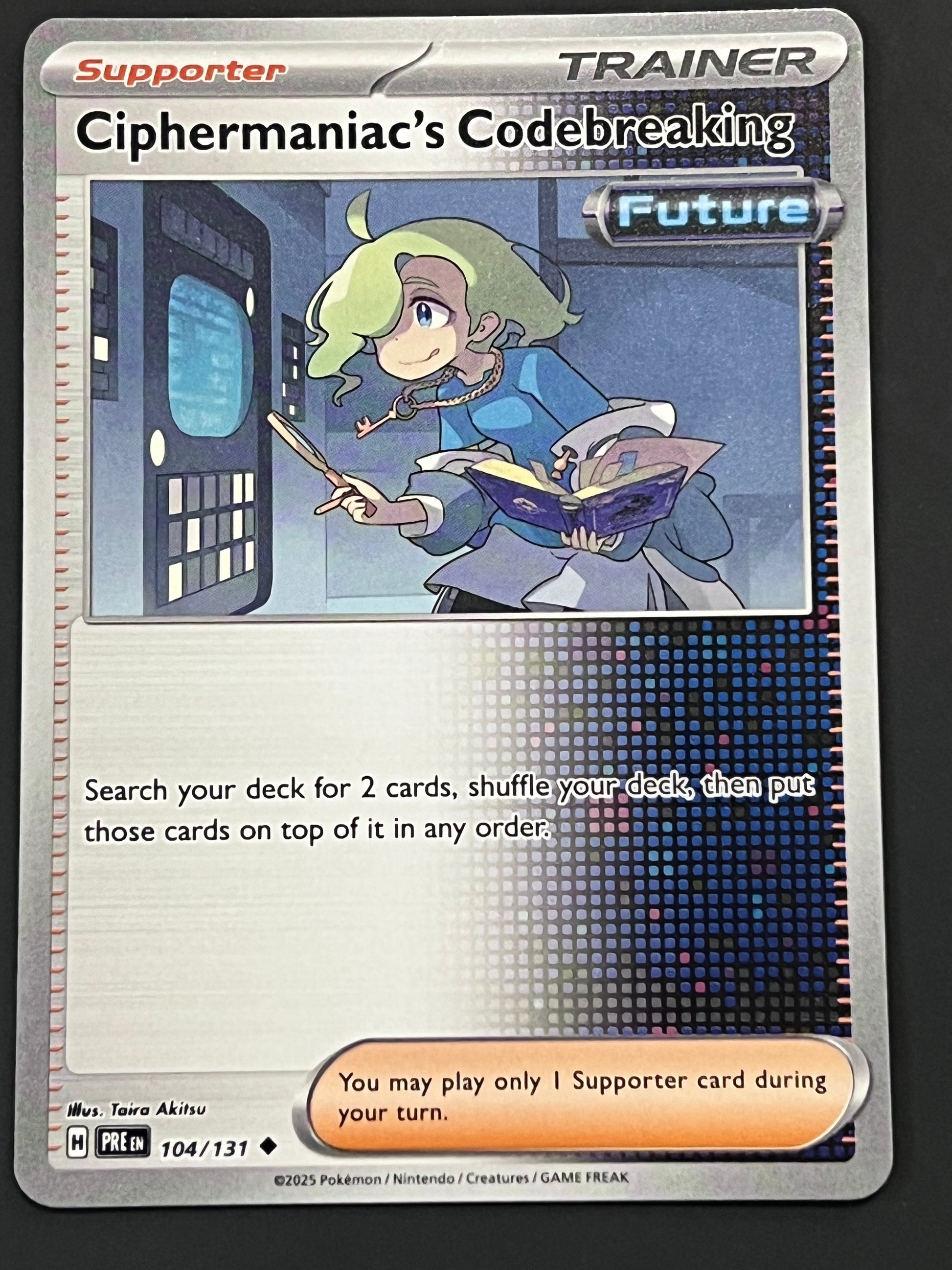 104/131 Ciphermaniac’s Codebreaking - Pokémon Prismatic Evolutions Uncommon, mint/near-mint condition.