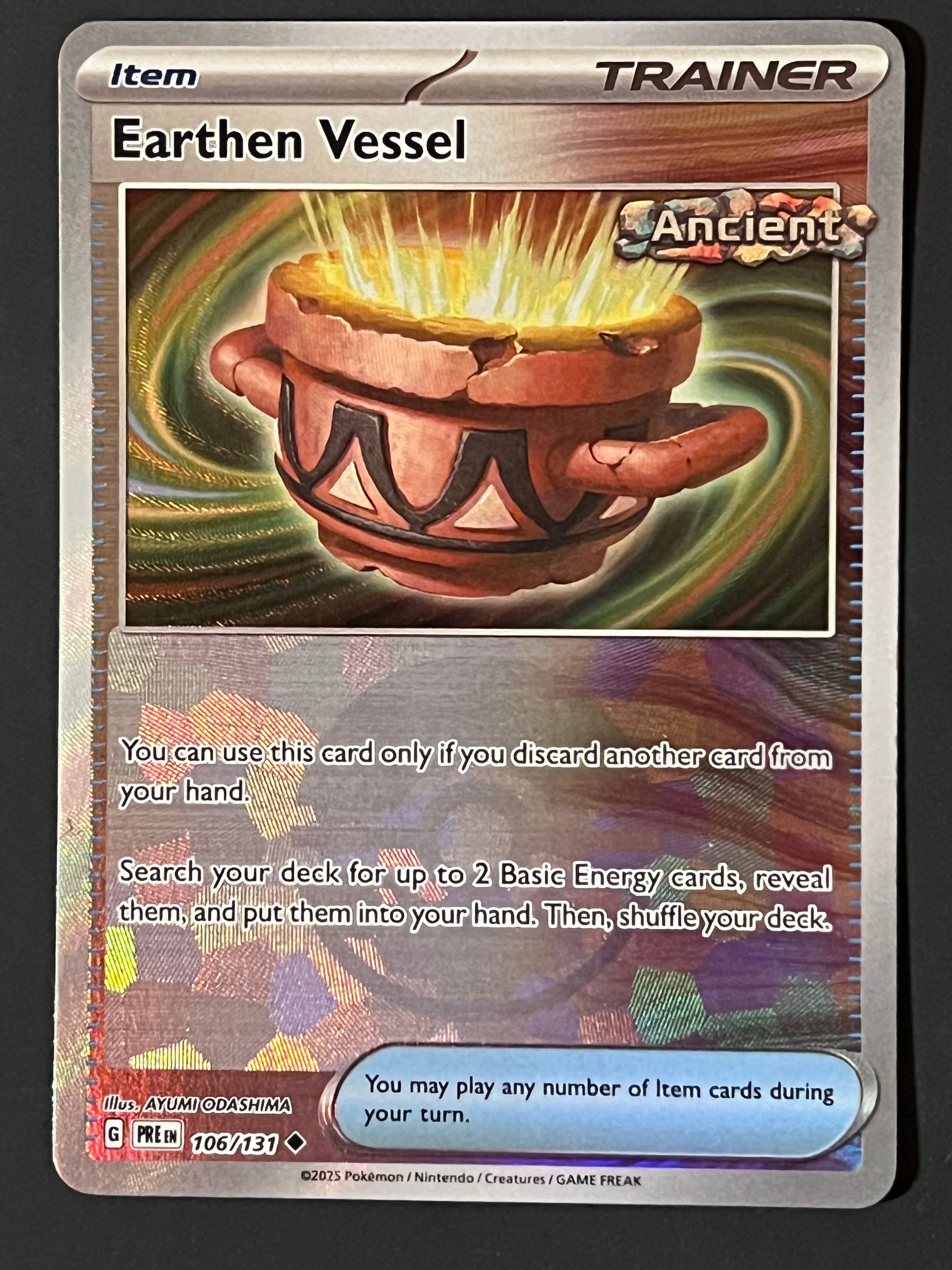 106/131 Earthern Vessel - Pokémon Prismatic Evolutions Uncommon Reverse POKEBALL, mint/near-mint condition.