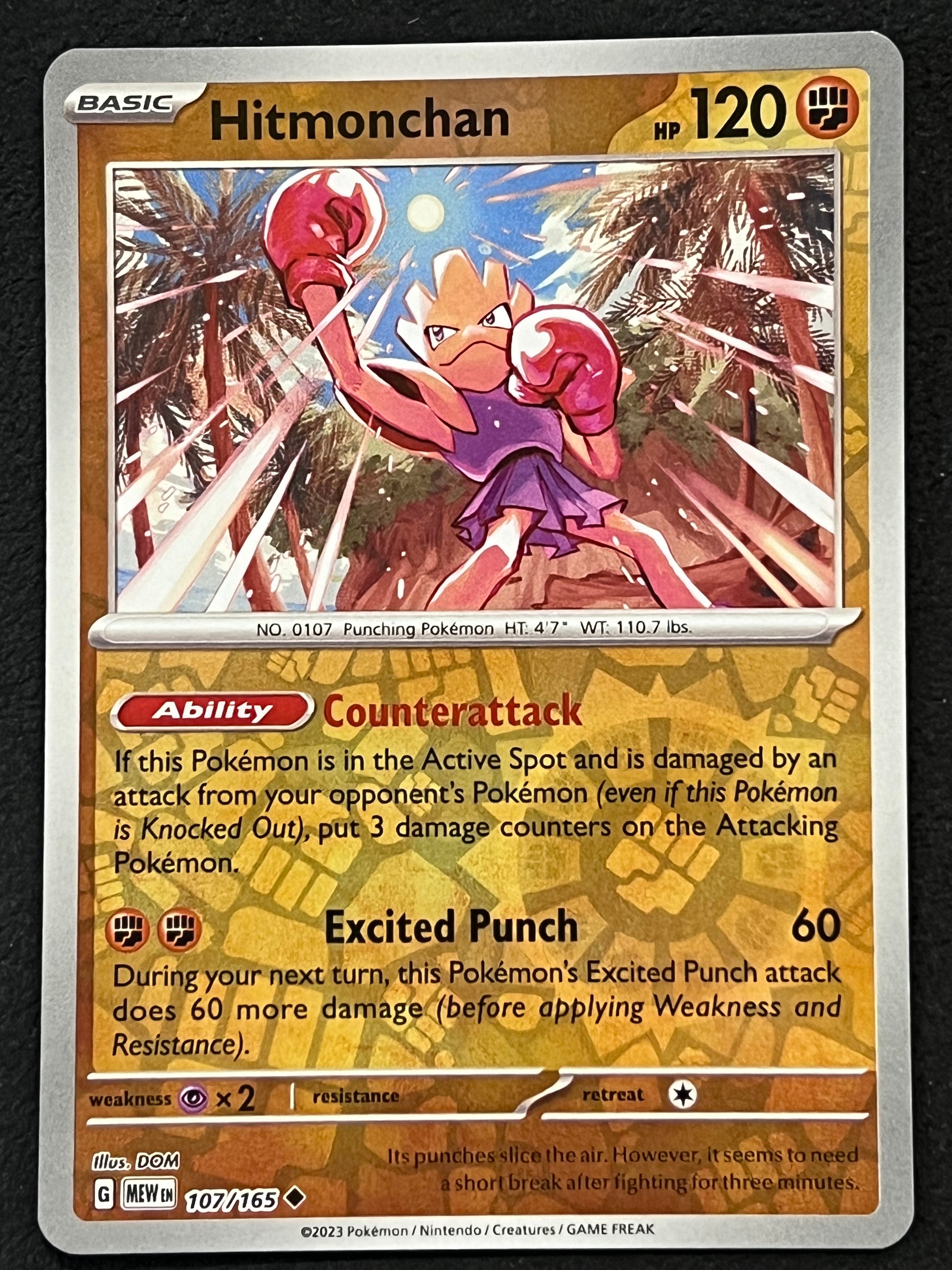 107/165 Hitmonchan - Pokémon 151 Uncommon Reverse, mint/near-mint condition.