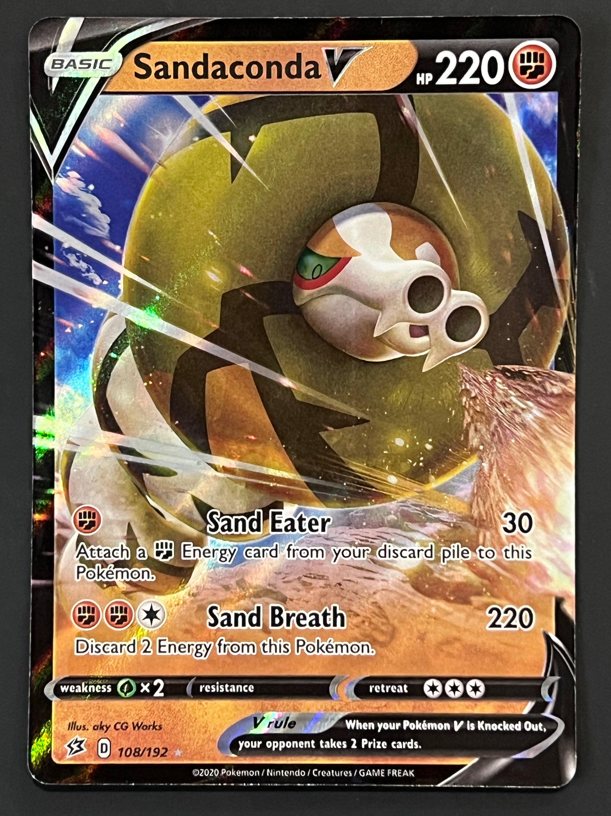 108/192 Sandaconda V - Pokémon Rebel Clash Ultra Rare, mint/near-mint condition, comes packed in a sleeve and a semi-rigid case.