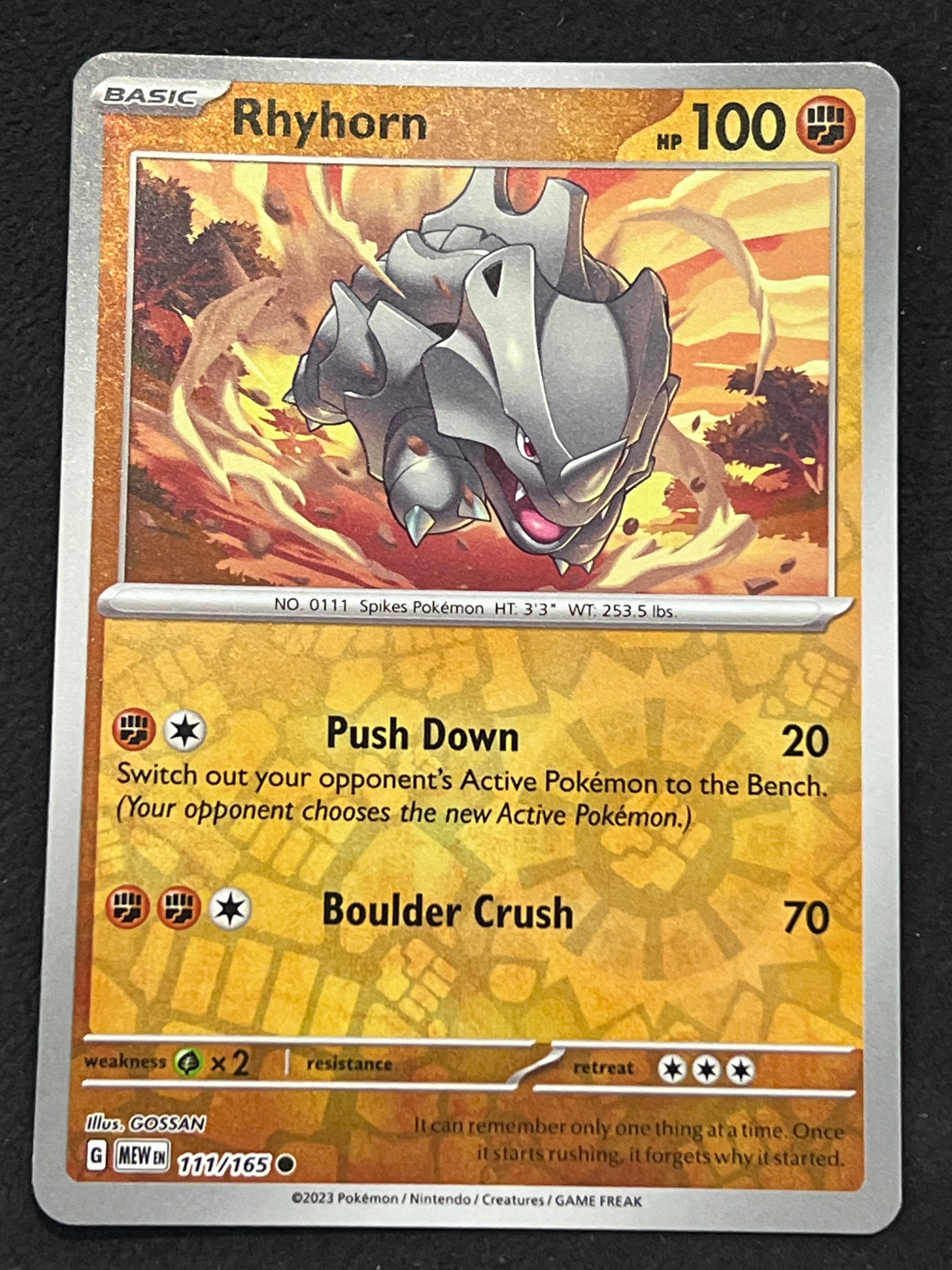 111/165 Rhyhorn - Pokémon 151 Common Reverse, mint/near-mint condition.