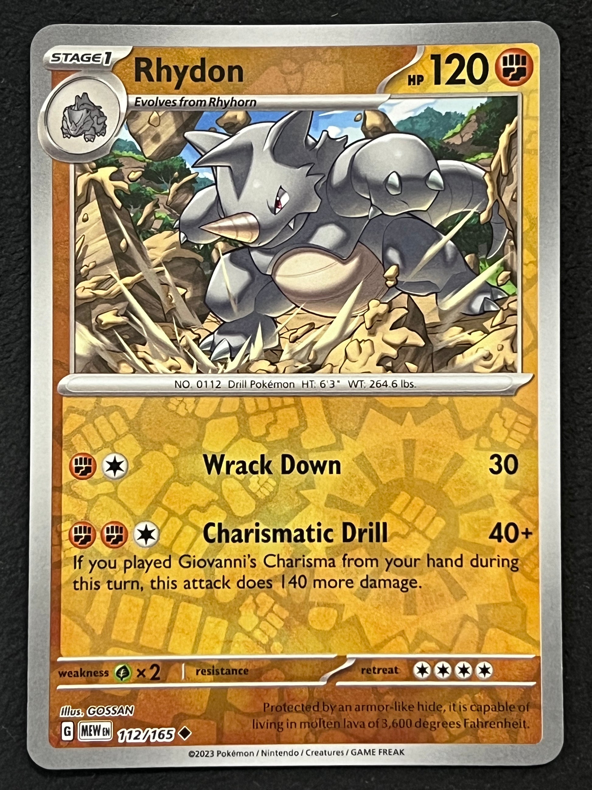 112/165 Rhydon - Pokémon 151 Uncommon Reverse, mint/near-mint condition.