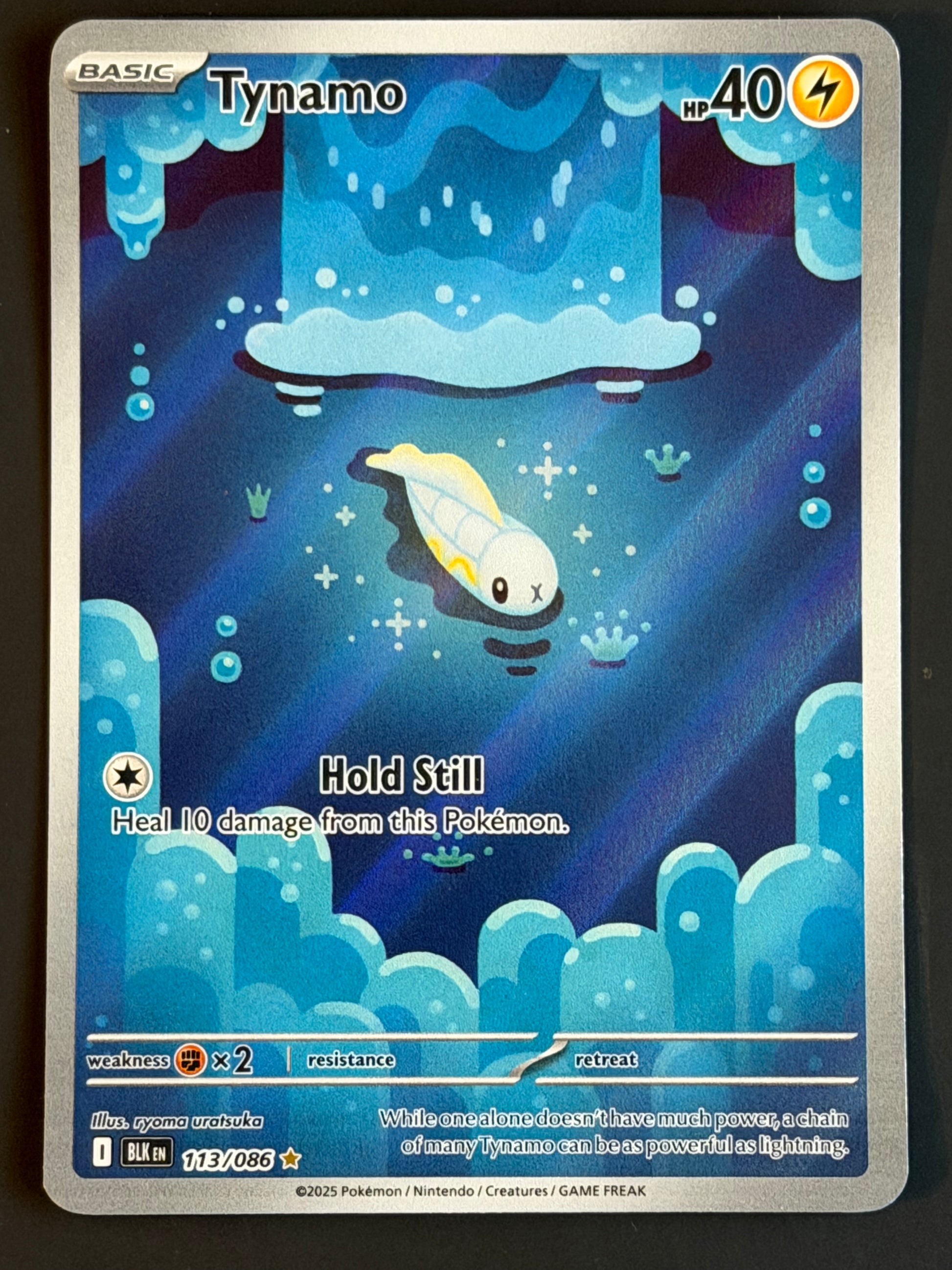 113/086 Tynamo - Pokémon Black Bolt Illustration Rare, near-mint condition, comes packed in a sleeve and a semi-rigid case.