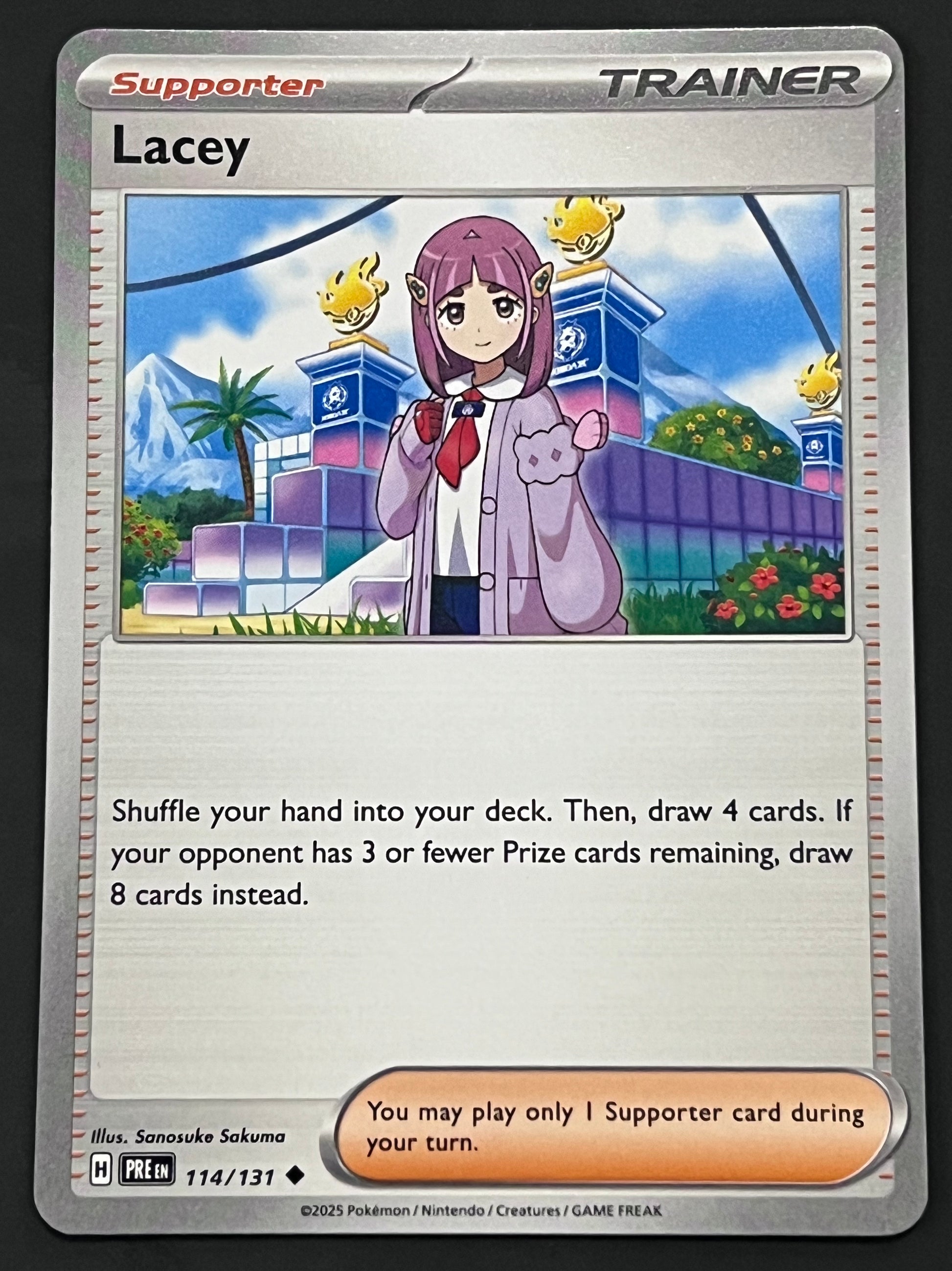 114/131 Lacey - Pokémon Prismatic Evolutions Uncommon, mint/near-mint condition.