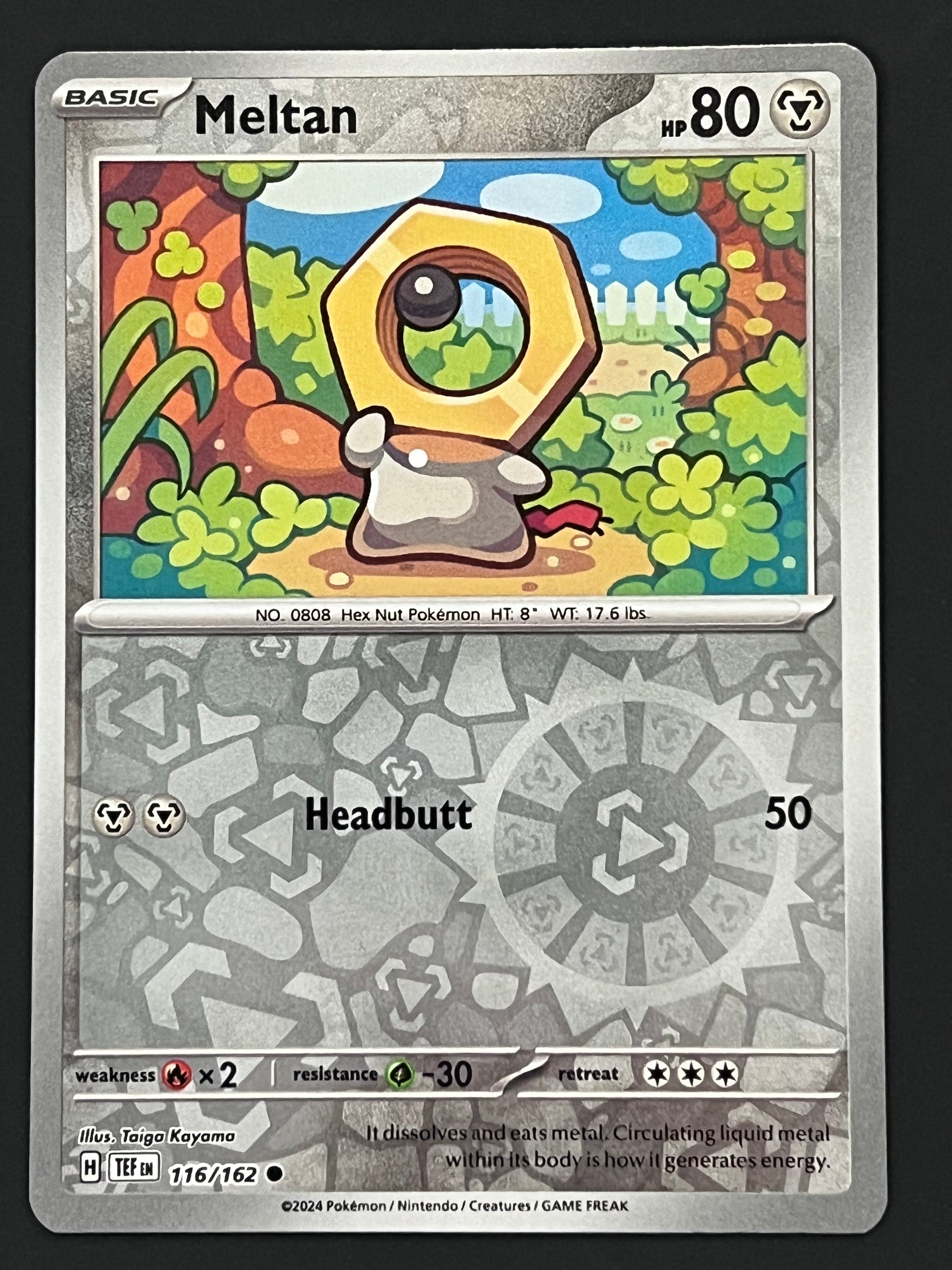 116/162 Meltan - Pokémon Temporal Forces Common Reverse, mint/near-mint condition.
