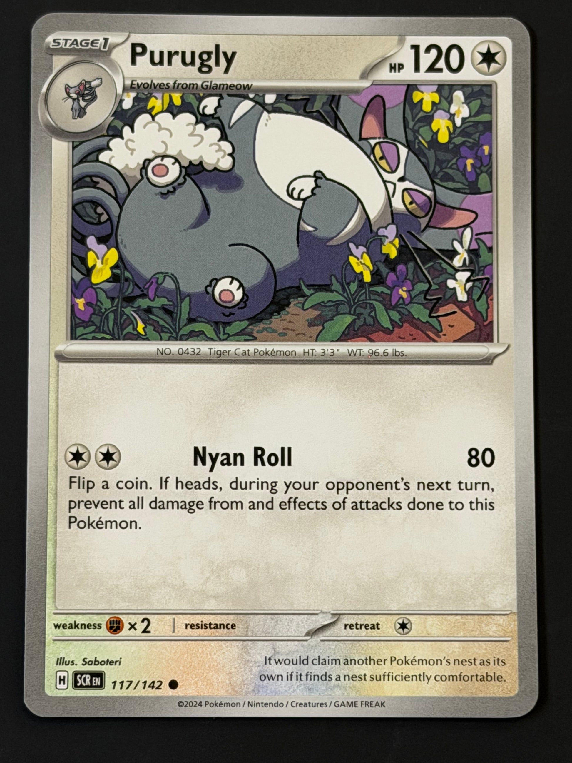 117/142 Purugly - Pokémon Stellar Crown Common, mint/near-mint condition.