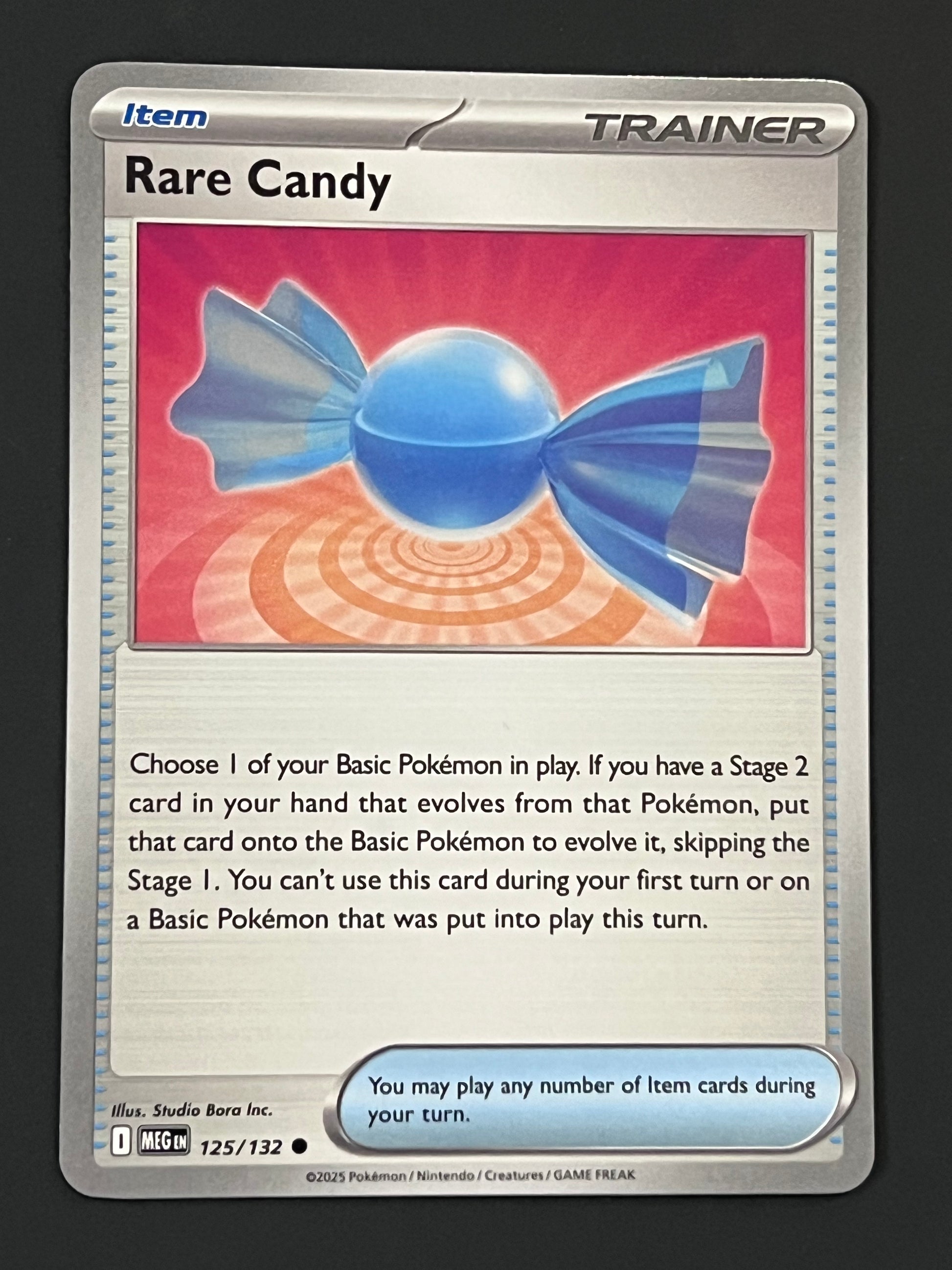125/132 Rare Candy - Pokémon Mega Evolution Base Common, near-mint condition, comes packed in a sleeve.