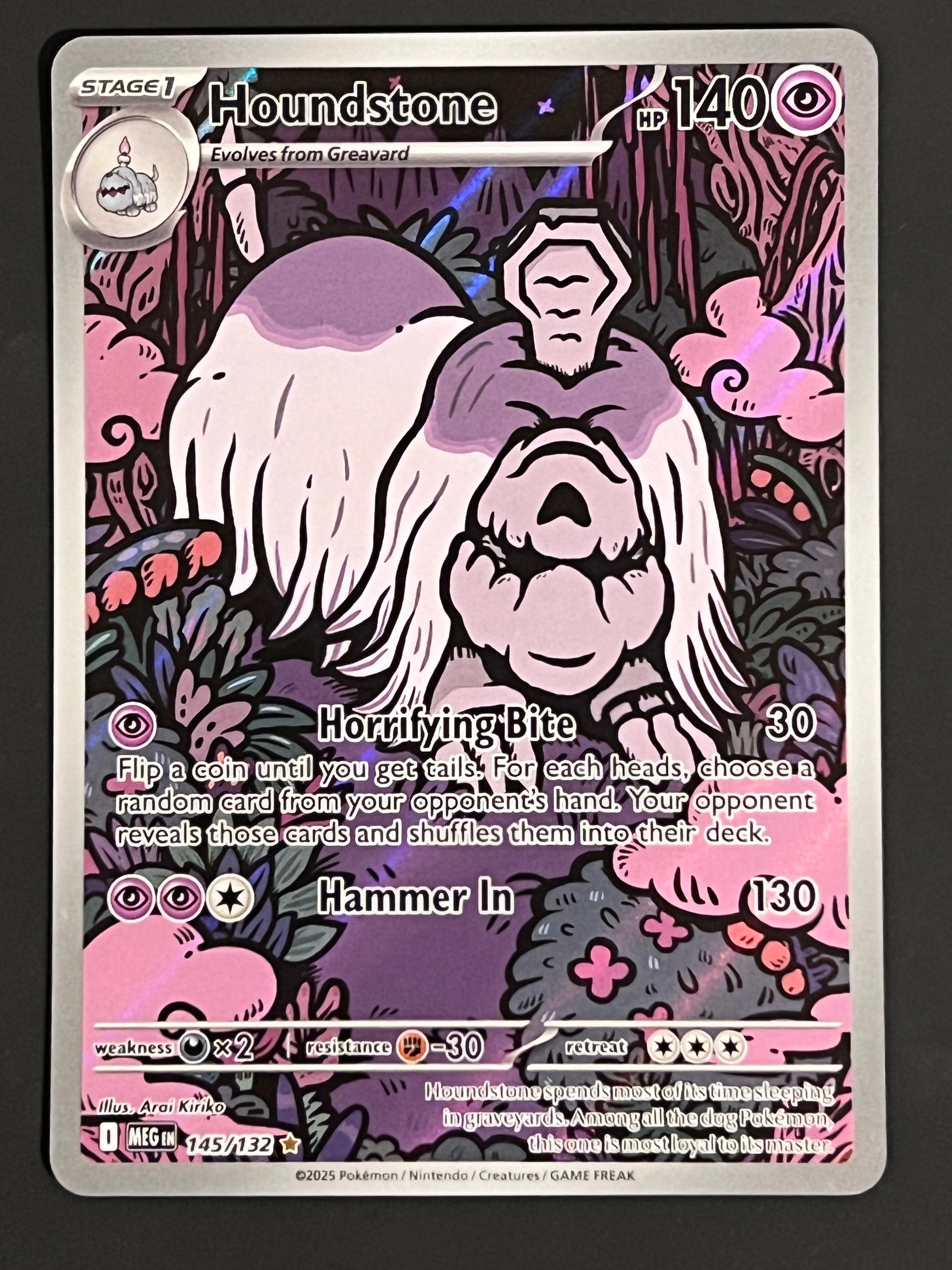 145/132 Houndstone - Pokémon Mega Evolution Base Illustration Rare, near-mint condition, comes packed in a sleeve and a semi-rigid case.