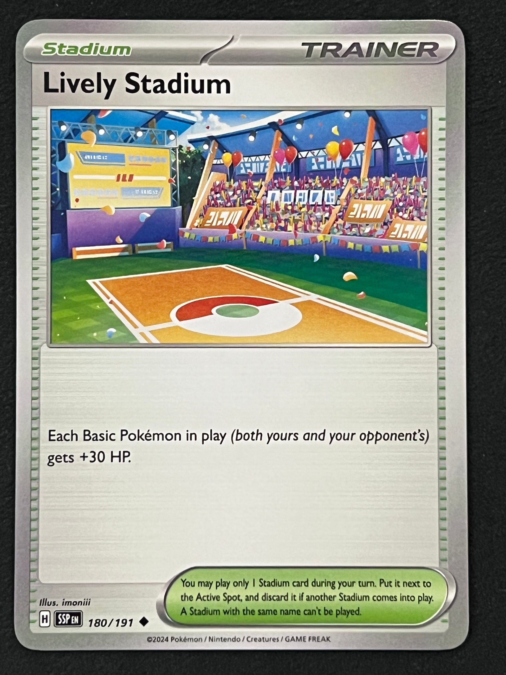 180/191 Lively Stadium - Pokémon Surging Sparks Uncommon, mint/near-mint condition.