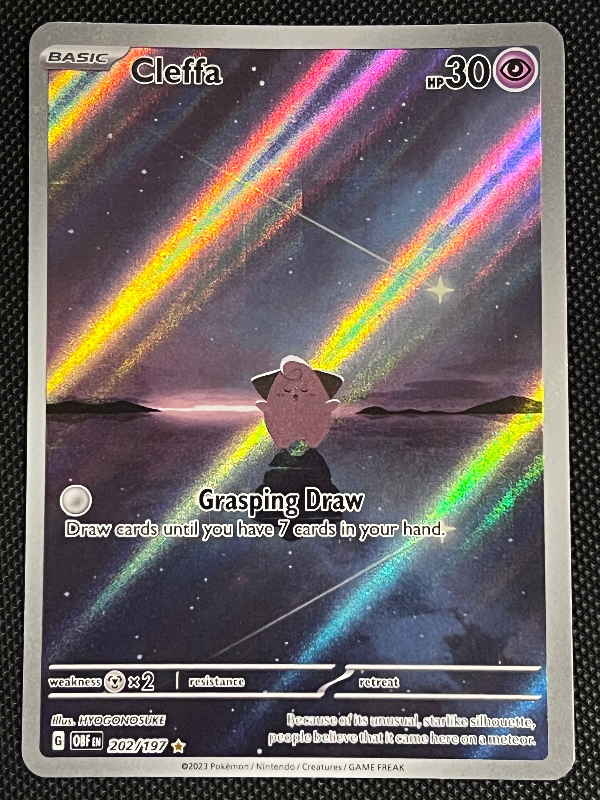 202/197 Cleffa - Pokémon Obsidian Flames Illustration Rare, mint/near-mint condition, comes packed in a sleeve and a semi-rigid case.
