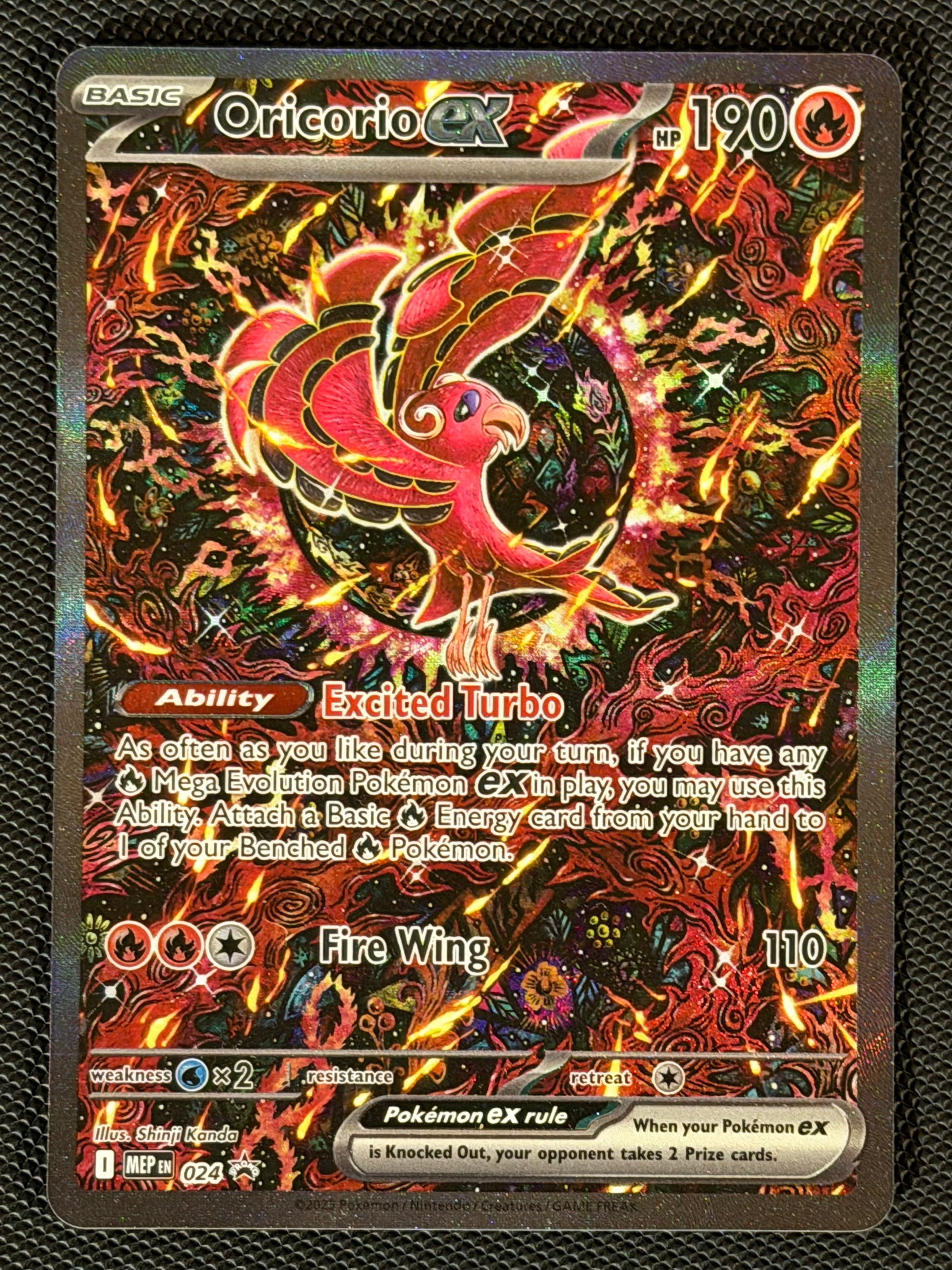 MEP024 Oricorio ex - Pokémon Black Star Promo, near-mint condition, comes packed in a sleeve and a semi-rigid case.