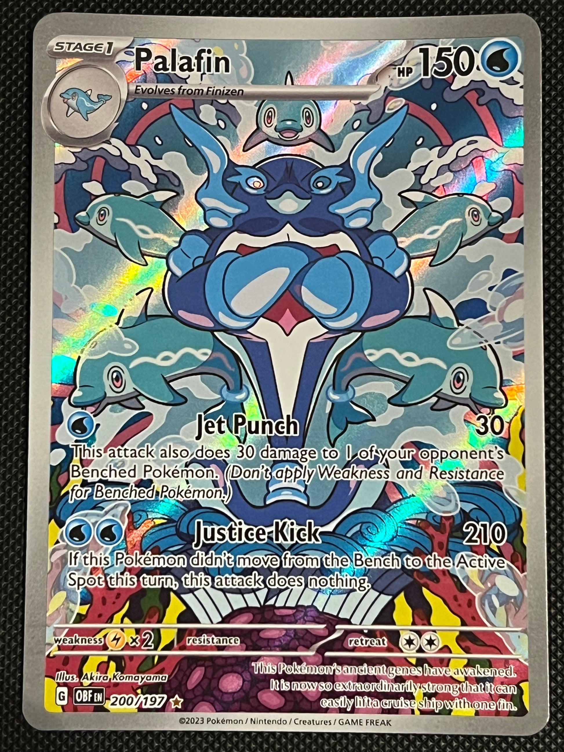 200/197 Palafin - Pokémon Obsidian Flames Illustration Rare, mint/near-mint condition, comes packed in a sleeve and a semi-rigid case.